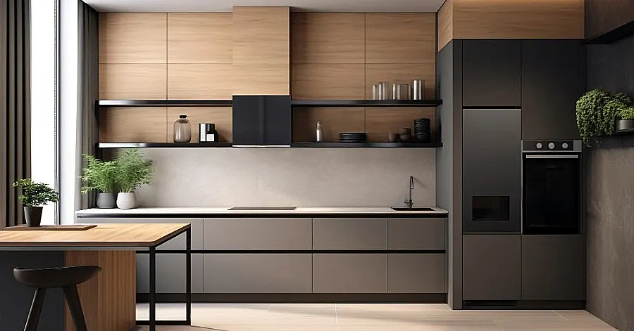 کابینتهای مدرن میتونن با MDF روکش PVC ( مات ، سوپرمات ، براق ) یا MDF با رنگ های پلی اورتان اجرا بشن. برای اینکه اون حس مدرن و خاص رو به وجود بیاری، میتونی از MDF با طرحهای افقی برجسته استفاده کنی. استفاده از مواد ترکیبی هم یه ایده رایج تو طراحی مدرن آشپزخونهست.