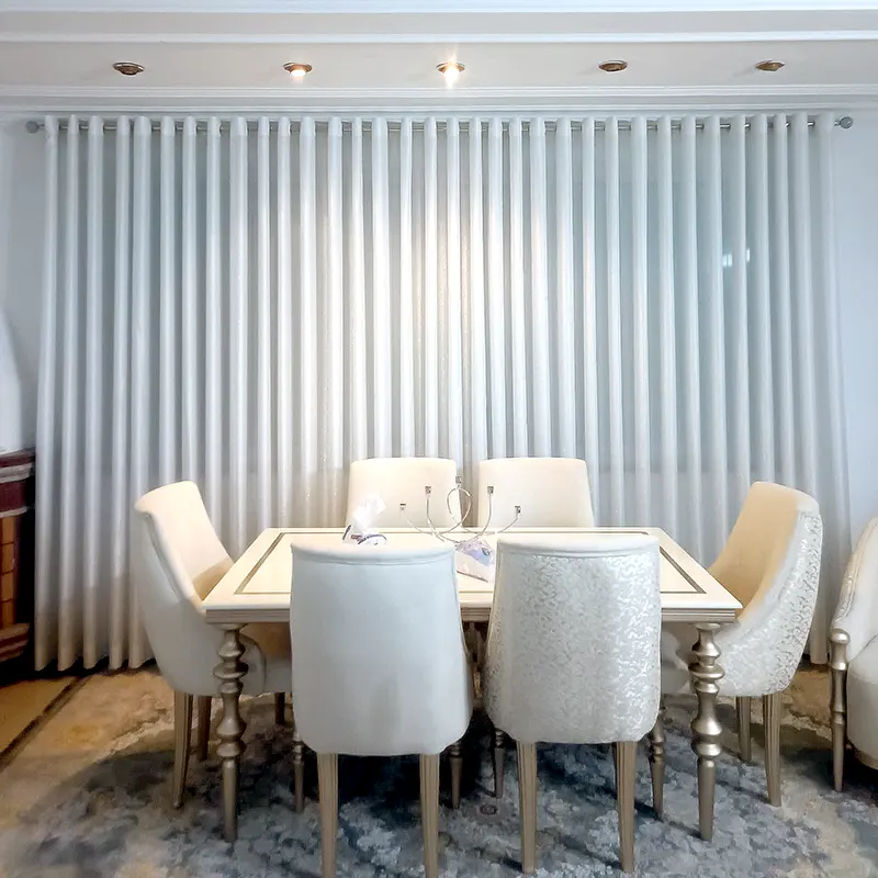 - رنگهایی مثل سفید، کرم و خاکستری در این پردهها رایج هستن که به ایجاد فضایی آرام و متعادل کمک میکنن.