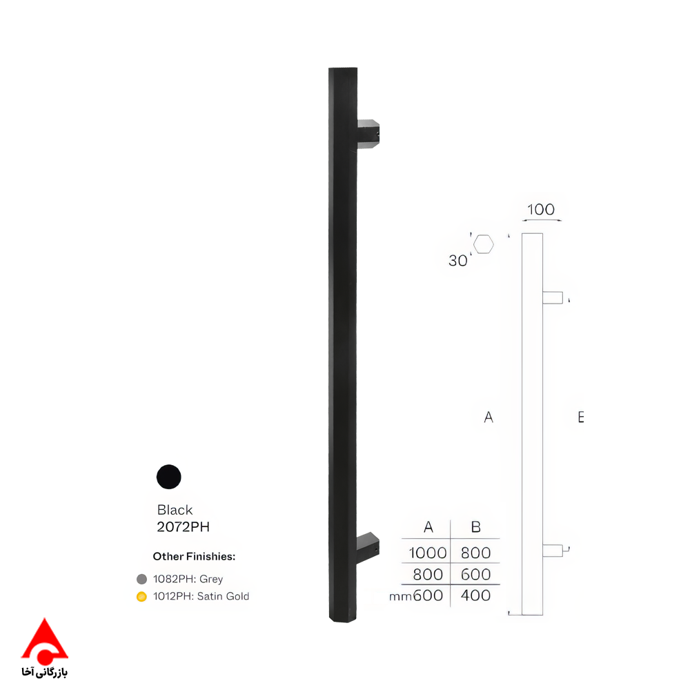 دستگیره استندی 100 سانتی مشکی برند TIK کد 2072PH مقطع شش گوش